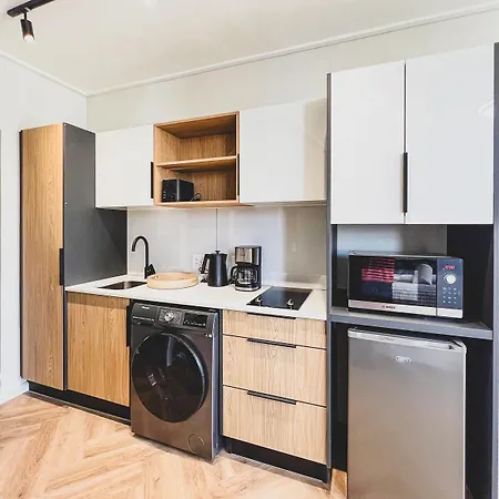 This apartment offers a balcony and a fully equipped kitchen, as well as comforts like a washing machine.